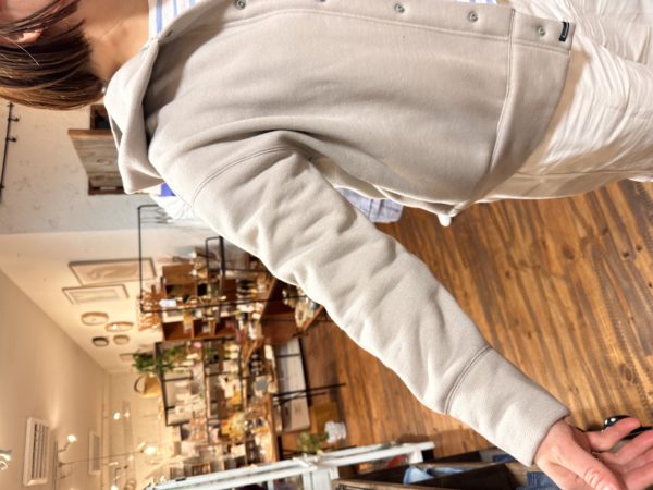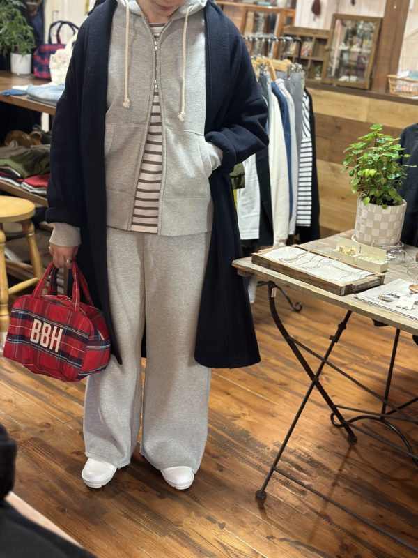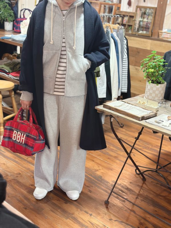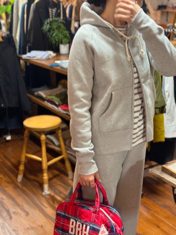 今時期は暖かい裏起毛のパーカーを合わせて。。