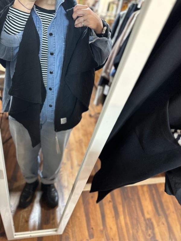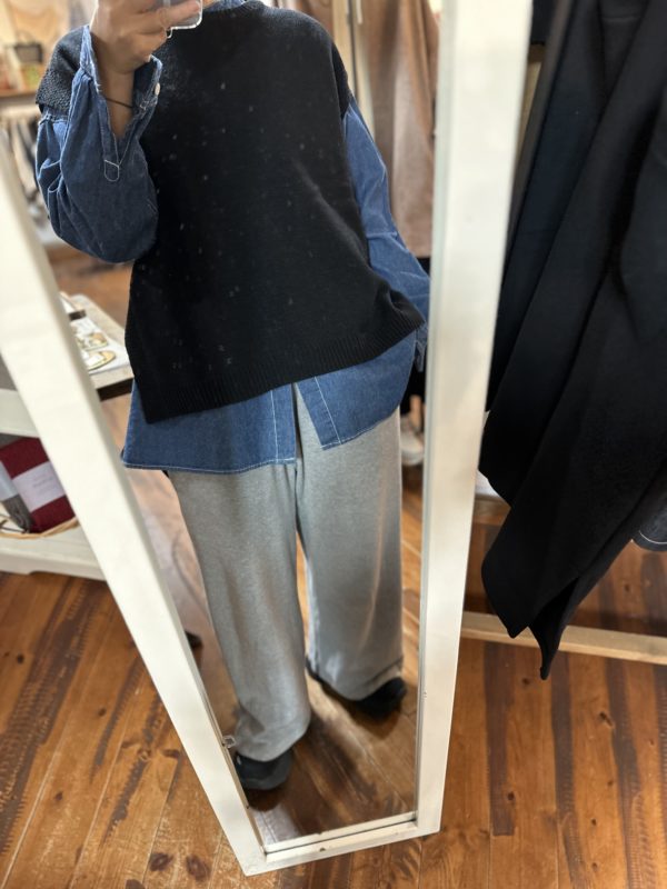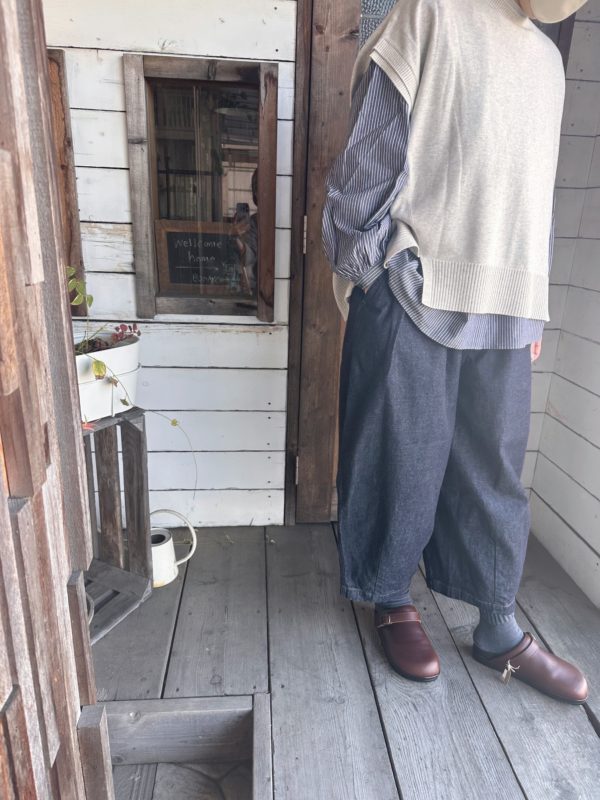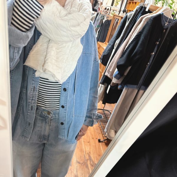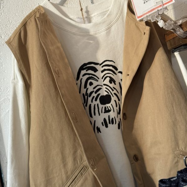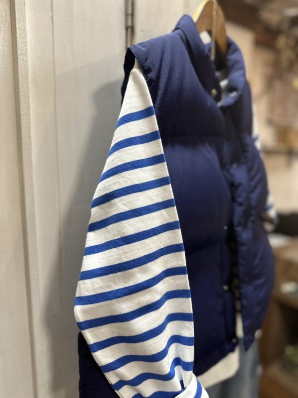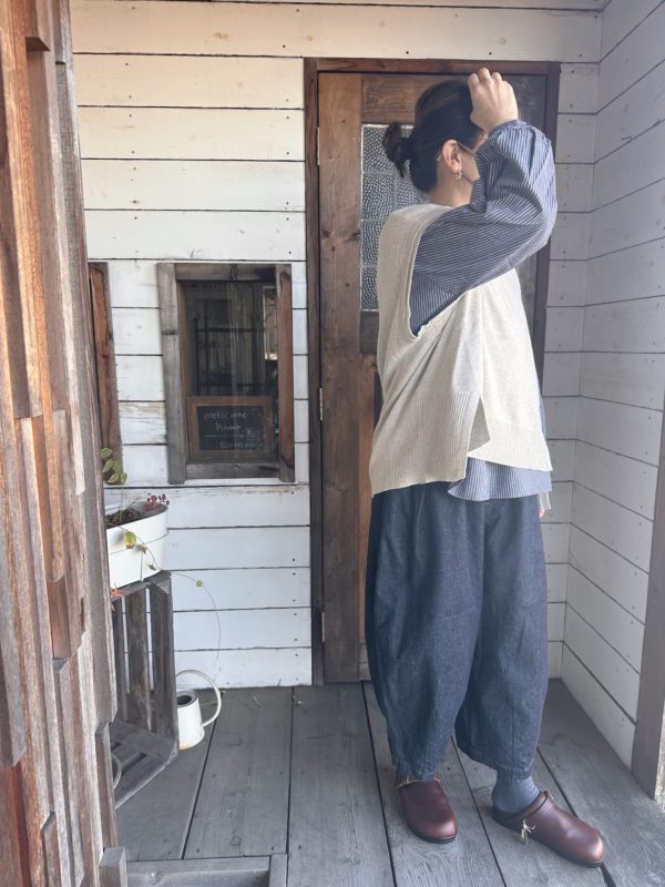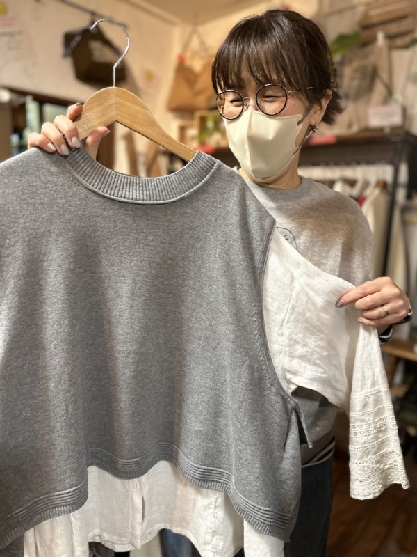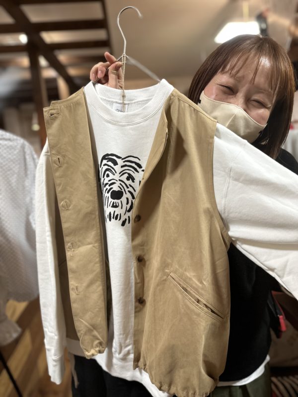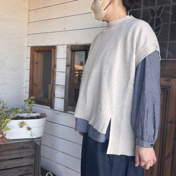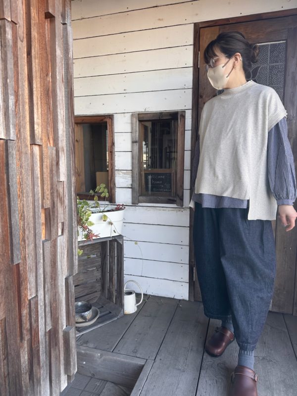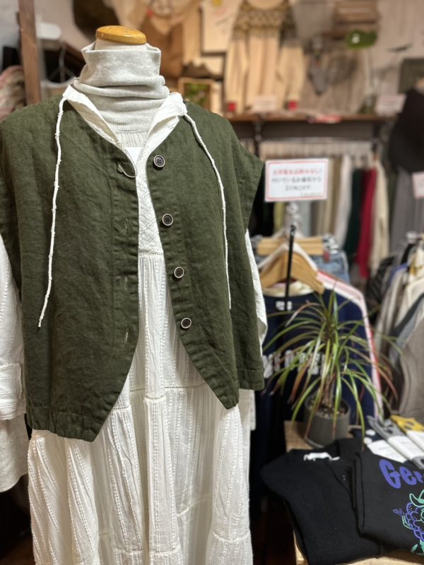 このベスト一枚あるとお持ちのお洋服がまた違った雰囲気で着られると思います。