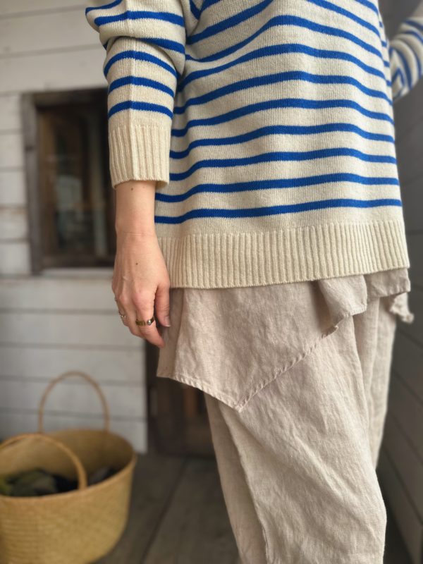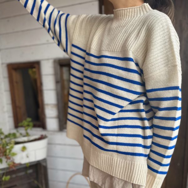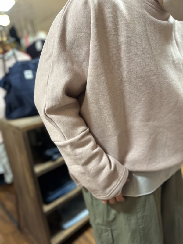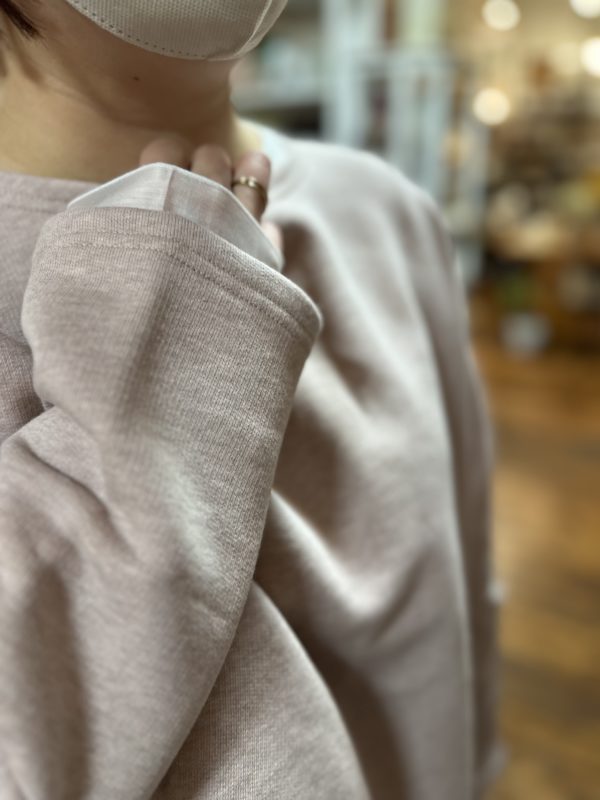 身幅広めなこちらのプルオーバーは、袖の切り替えがポイント。