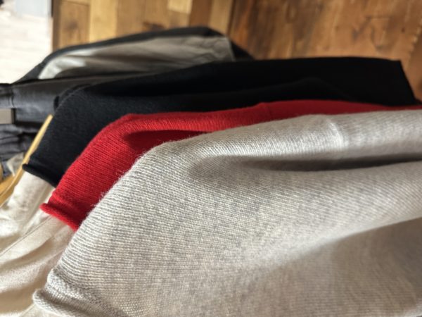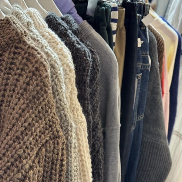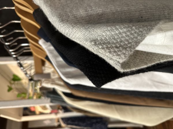 急な寒さにお店ではニットやベスト温かい物が人気です。