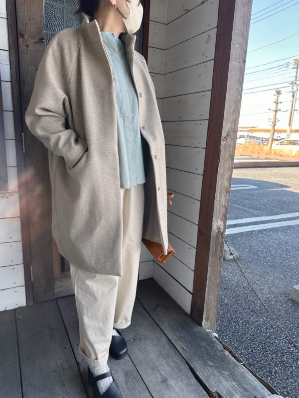 ヘブンリーからはノーカラーのコートが。