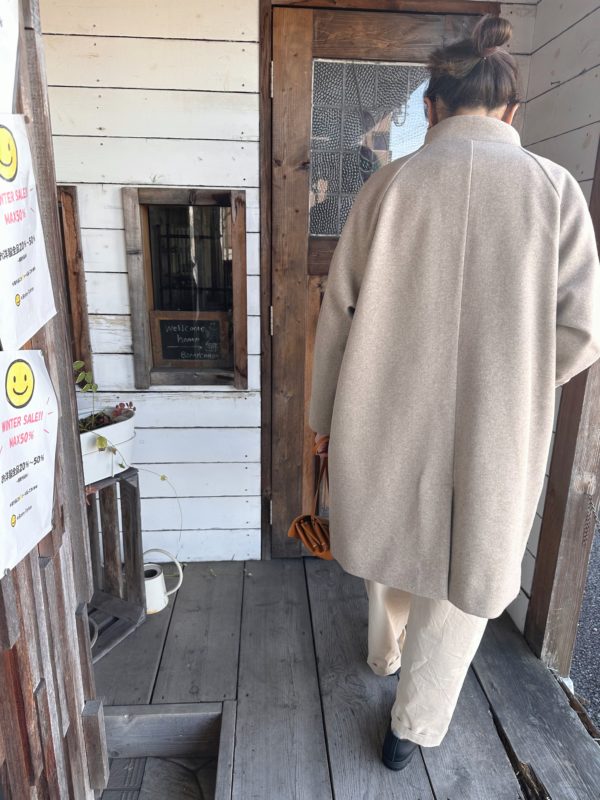 ホームワーキングから届いたショールカラーのコート。