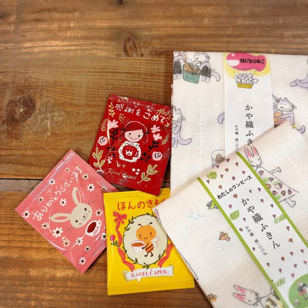 フキンと紅茶のセットなど。